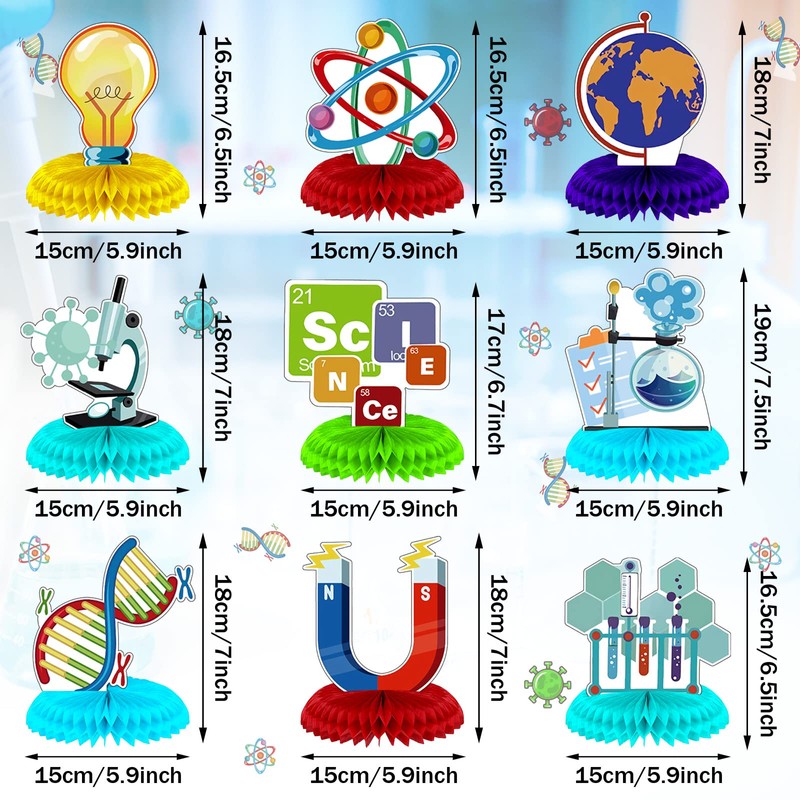 - What You Will Get: the package comes with 9 pieces of science party table decorations in 9 different styles, ample quantities and diverse styles can meet your party decorative needs, you can place them in your room anywhere, which will make your party cooler and charming