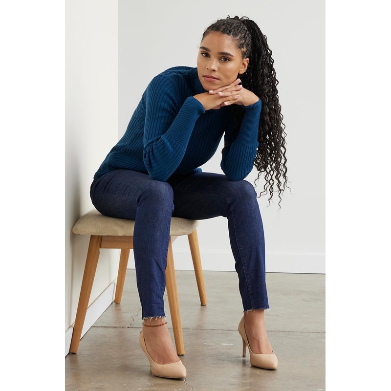 Fair Indigo Suéter de cuello alto orgánico acanalado de comercio justo, Violeta Azul, M