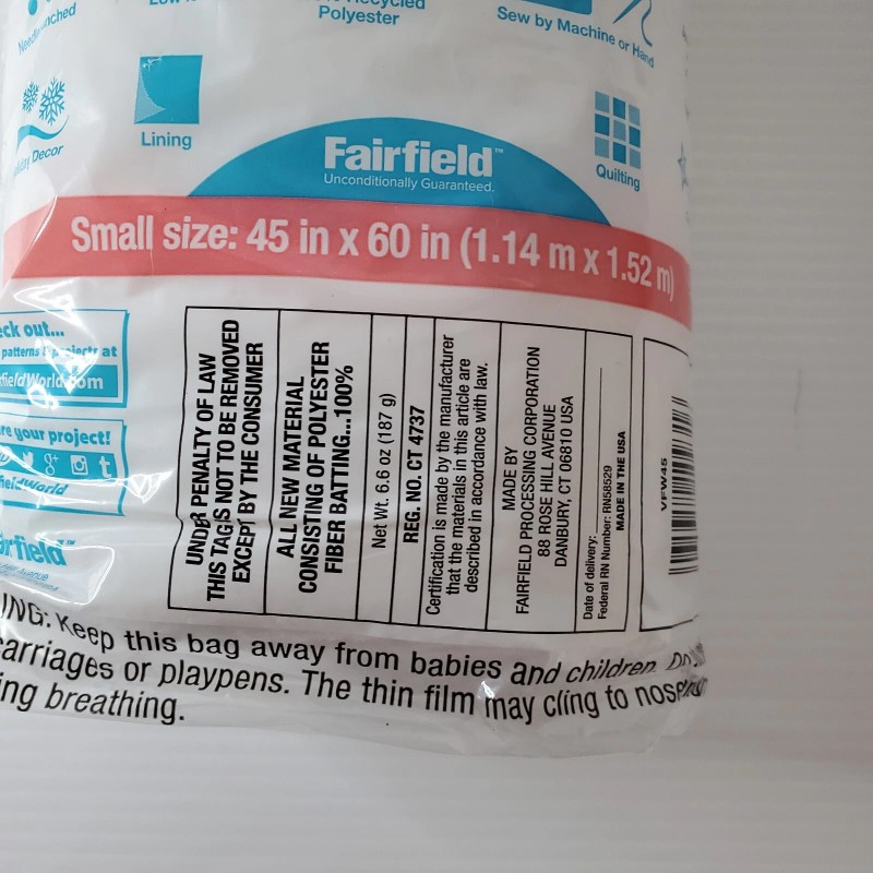 Fairfield Poly-Fil Project Fleece Small 45” x 60” Crib Quiting Batting Craft Multipurpose
