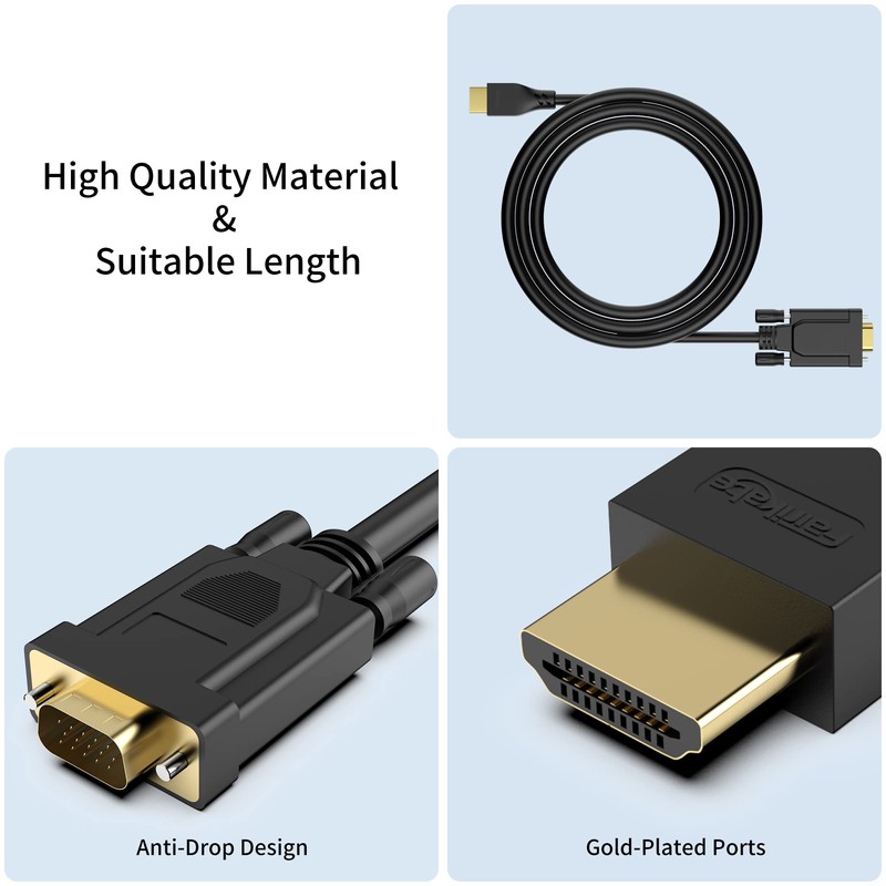 - 【Stable Image】 Unidirectional HDMI to VGA cable with gold-plated ports on both sides, not easy to rust and more stable signal transmission. And the built-in advanced chip converts HDMI digital signal to VGA analog signal, providing smooth picture quality for VGA monitors. Please note that transmission is from HDMI port to VGA port, and this cable is not bidirectional, Not from VGA to HDMI.