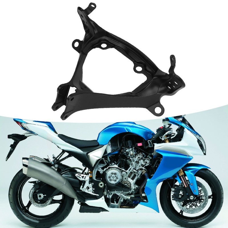 1、Applicable Models: Fairing headlight bracket support is replacement for SUZUKI GSXR 600 750. Please confirm whether your model is applicable before buying. 2、Strong Stability: Fairing stay headlight bracket is made of high strength material, sturdy structure, safe and reliable, stable and solid fixing effect, not easy to fall off. 3、Reliable and Beautiful: Upper stay fairing headlight bracket is not only beautiful, but also can effectively fix the fairing, ensure the effect of the fairing, and improve the safety of the vehicle. 4、Easy to Install: Headlight mount fairing stay bracket is easy to install, does not require much handling, will not affect the original structure of the vehicle, can be fixed by clips and clamps. 5、Advanced Material: Upper stay fairing headlamp support is made of premium material, which is hardness, rustproof, sturdy and durable and has a long service life.
