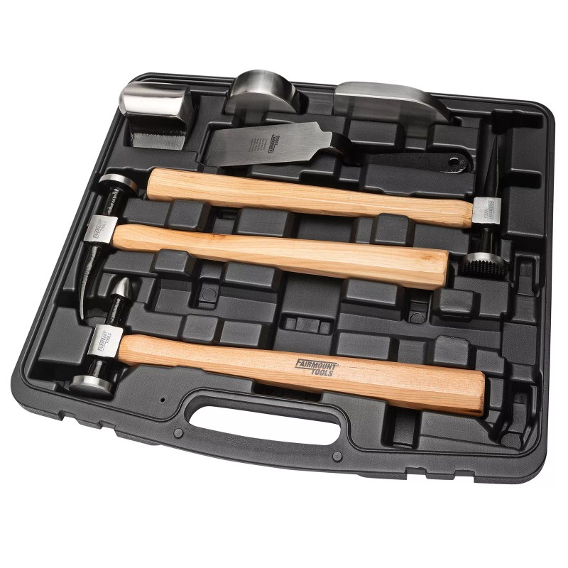 This Fairmount 7 Piece Professional Body Hammer and Dolly Set is suitable for both the professional and the discerning DIY restoration enthusiast. Hardened steel striking surfaces are durable and make the most of every swing. All handles are sealed hickory wood with a timeless look that will last a lifetime. This 7 Piece Set features Hammers, Dollies, and Dinging Spoon to provide a complete body forming solution. These Hammers and Dollies are packaged in form-fitting, blow molded carry cases.