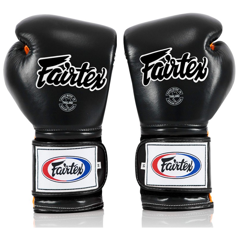 Fairtex Muay Thai Boxing Gloves BGV9 - Heavy Hitter Mexican Style Training & Sparring Gloves for Kick Boxing MMA K1 (Black/Orange, 14 oz)