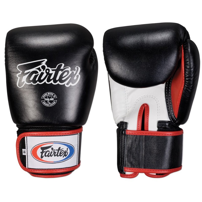 Fairtex Muay Thai Style Training Sparring Gloves, 14 oz, Black/White