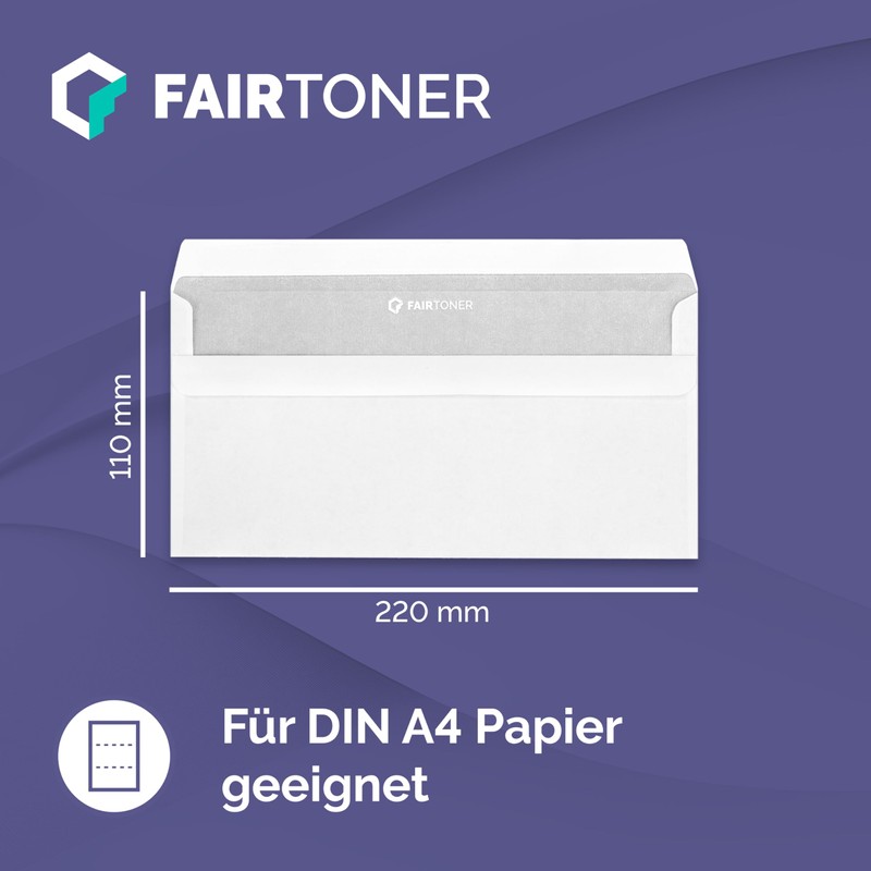 FairToner FairToner Briefumschlag DIN Lang Selbstklebend, (100 Stück) mit Innendruck in Folienpackung-eingeschweißt, weiß ohne Fenster