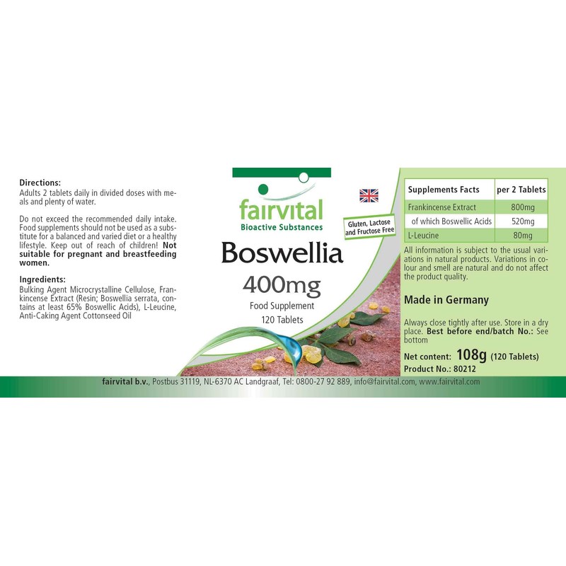 Fairvital | Boswellia Frankincense 400mg - 120 Tablets - Vegan - 65% boswellic acids