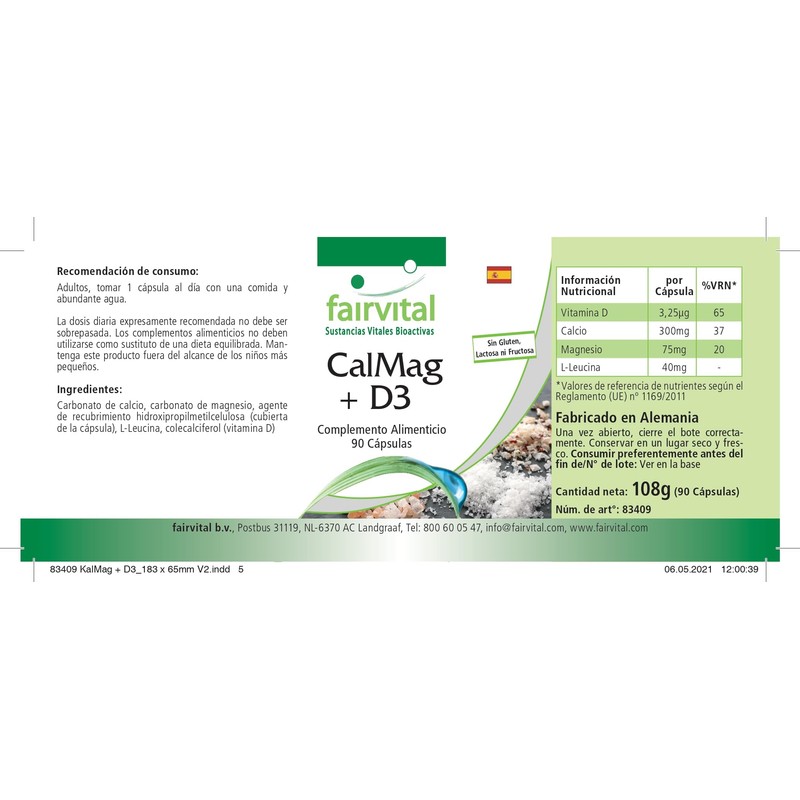 - ✔ fairvital German quality: daily dose: 1 capsule per day contains 3.25 μg vitamin D3, 300 mg calcium and 75 mg magnesium. High dose. Excellent value for money!