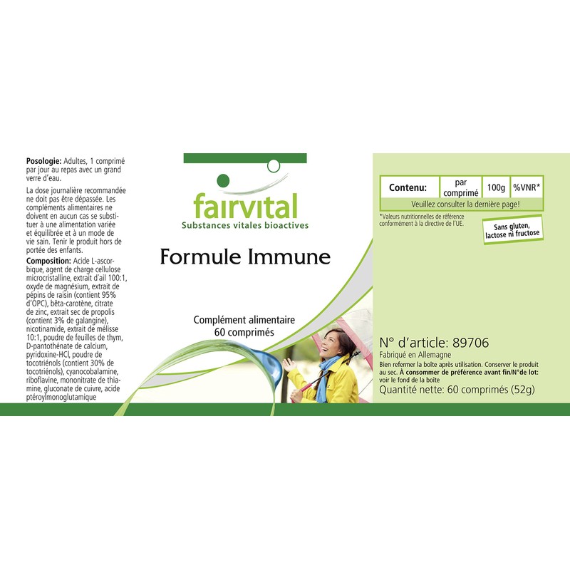 • ✔ fairvital German quality: daily dose: 1 tablet per day contains a B complex, zinc, copper, vitamin C, tocotrienol, beta-carotene, OPC, garlic, propolis, thyme and balm. High dose. Excellent value for money!