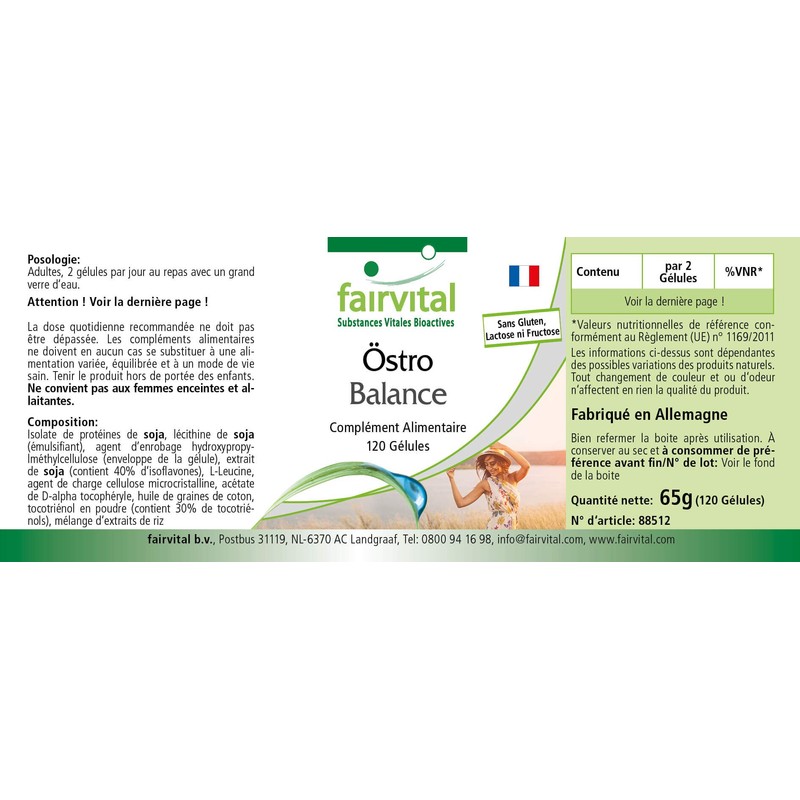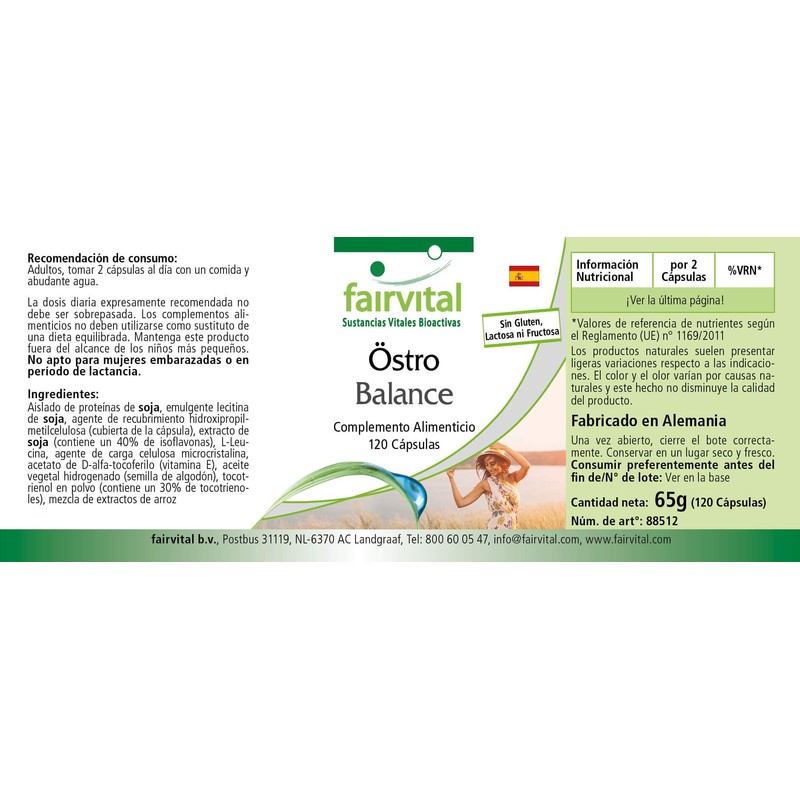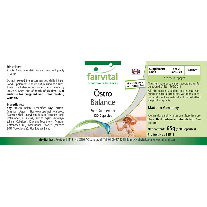 Fairvital Östro Balance - High Dose - 120 Capsules - Soy Isoflavones (Genistin, Daidzin, Glycitin) with Vitamin E