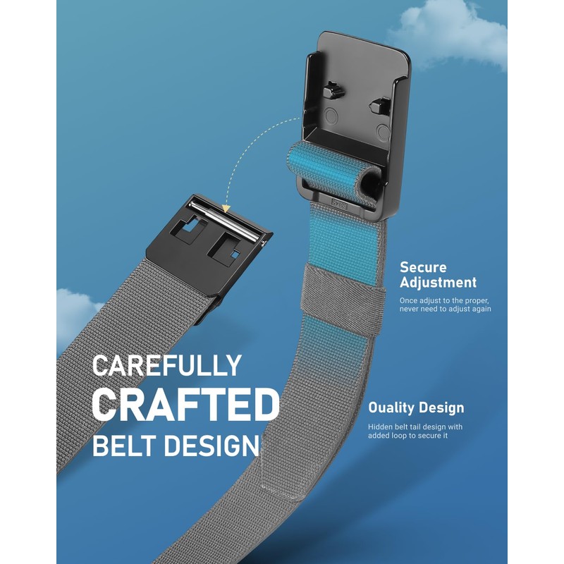 - Breathable Stretch Nylon: This mens stretch belt is made of special elastic woven nylon, which is more solid than regular belts. What's even more surprising is that when you engage in various activities, its sturdy and stretch nylon webbing will make your waist more comfortable and keep it tight, saying goodbye to the stuffy leather belt. Anyone who engages in sports activities for a long time will make good use of and fall in love with this sports belt.