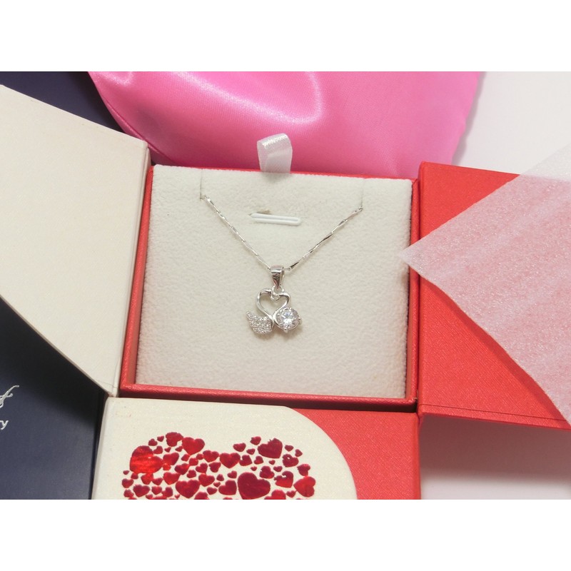 Fairy Heart Swan Motif Necklace W Swan Heart CZ Diamond Present Gift, Stone, Cubic Zirconia