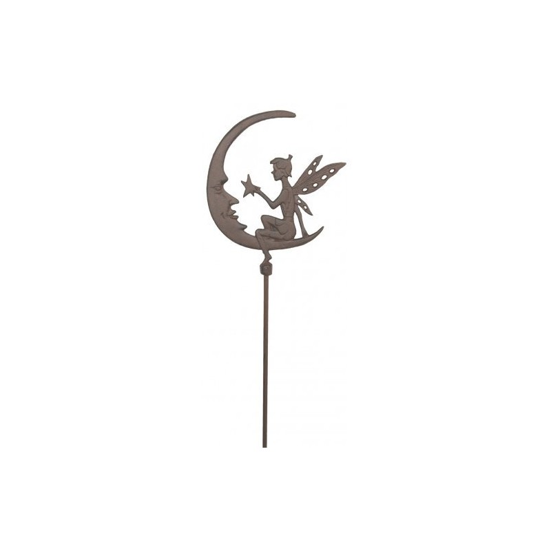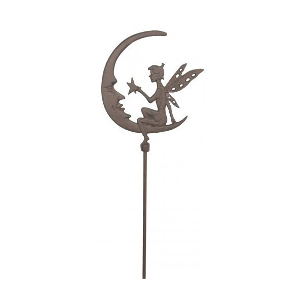 Fairy Sitting on Half Moon Cast Iron Garden Stake, 45-inch, Outdoor