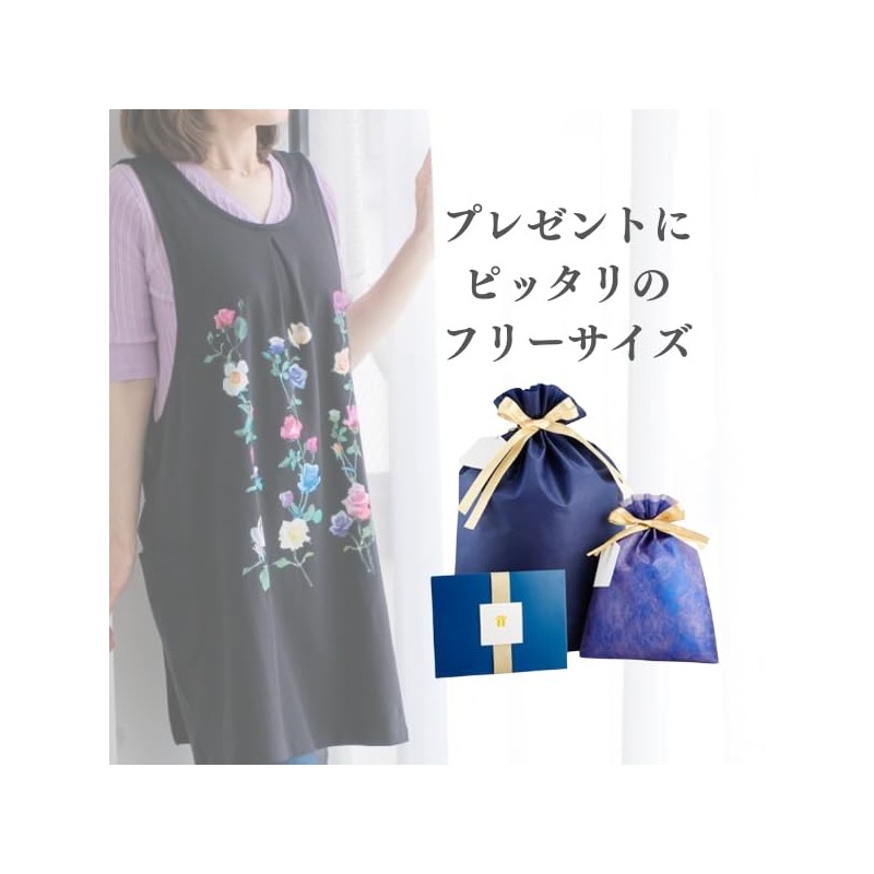 - A classic round neck cross apron with a beautiful floral motif that women love. No button and no ribbon makes it easy to put on and take off. One size fits all, making it the perfect gift. Specifications: Pocket: Yes, Buttons, Hooks: None, Slit: None