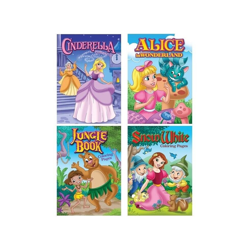 Fairy Tales Coloring Books Kids Classic Cinderella Alice Snow White Jungle 4-Pc