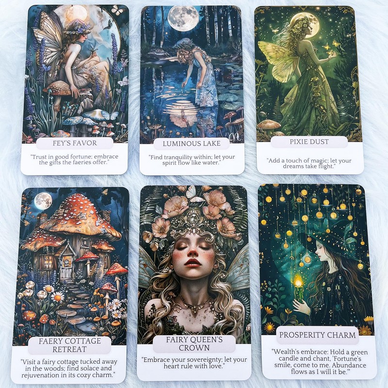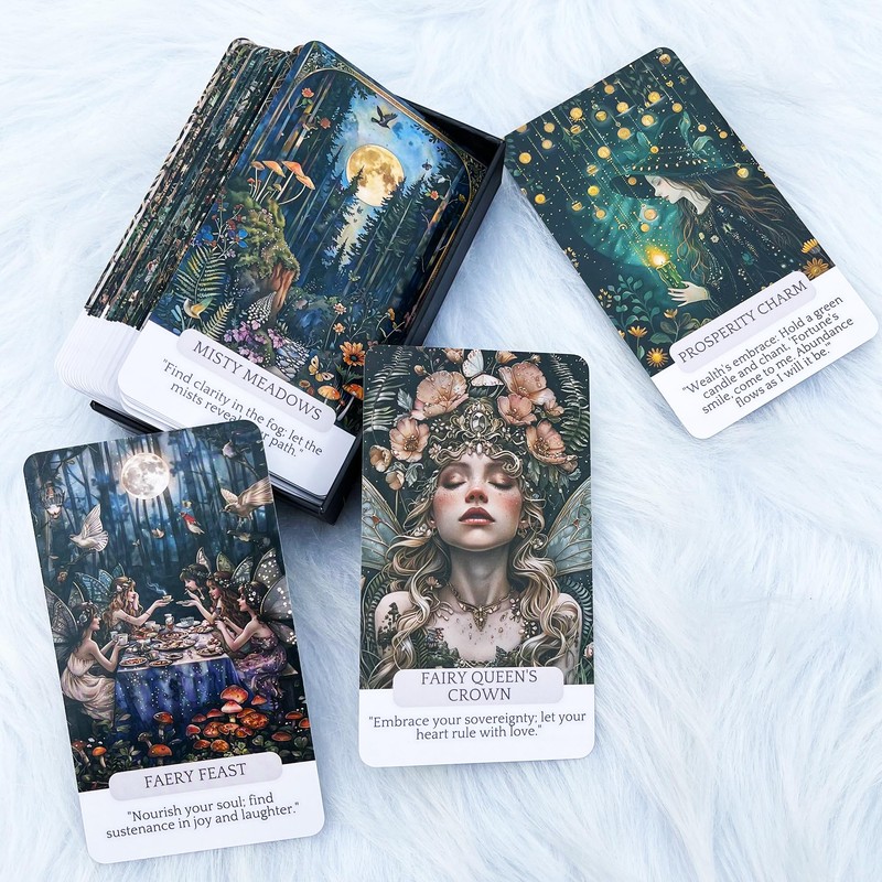 - Fairy Whispering Oracle Card: Explore the fascinating world of the Faeries with our Faerie Whispers Oracle Cards. This beautiful set contains 54 beautifully designed oracle cards perfect for use in everyday life, spiritual practice, and more. They will inspire and guide you with the mysterious whispers of the Faeries. Incorporate these oracle cards into your daily life for guidance and inspiration.