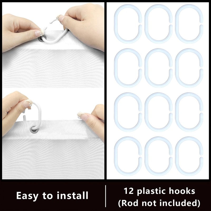 - Products Include - 1 Shower Curtain and 12 Shower Curtain Hooks .(rod is not included). The shower curtain fits for most standard bathtubs and shower stalls, whether straight or curved shower rod.