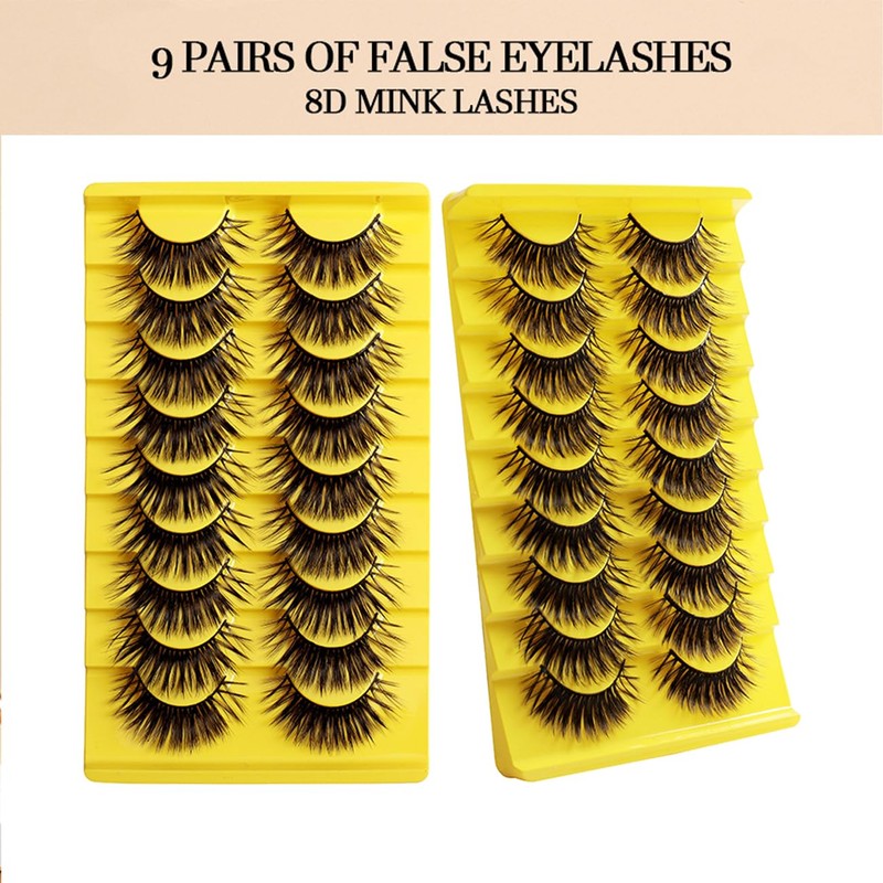 FAIRYGATE Lashes 9 Pairs 3D False Eyelashes Natural Look Russian Strip Lash D Curl Short Artificial Reusable Cat Eye Volume Eyelash Wispy Eyelashes B5323