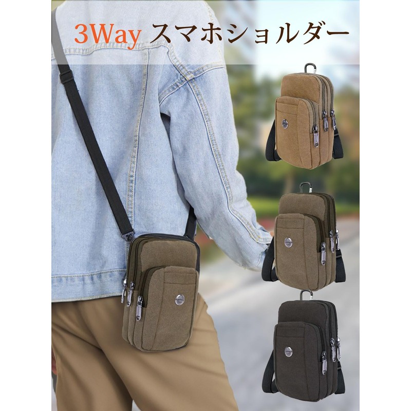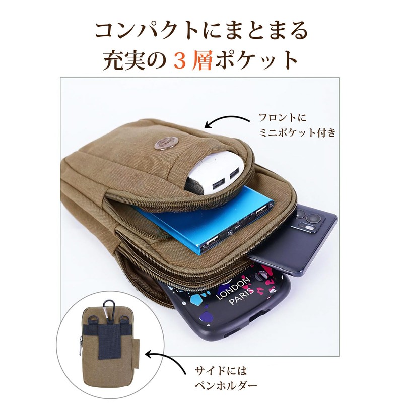 FairyPomu Men's Smartphone Pouch, Smartphone Shoulder, Waist Pouch, Belt Pouch, Shoulder Bag, Carabiner, Sacoche, Cross-Angled, Multifunctional, Compact, Black