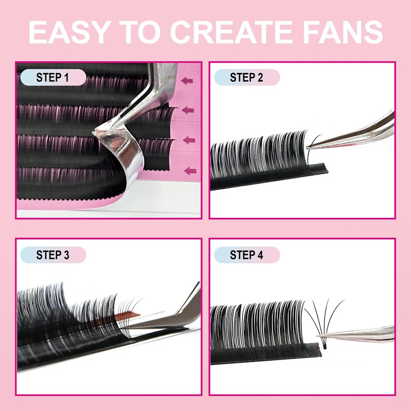 • More Lighter-More Softer:Easy fan lash extensions are handmade from PBT materials with matte black color.And upgraded the process to make the lashes more softer and lightweight than regular lashes and the fluffy fan is more similar to natural lashes.