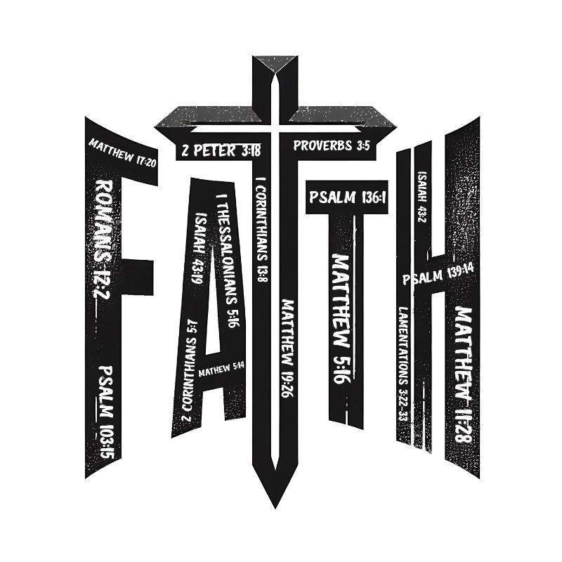 Faith Direct To Film Print, DTF Print, Ready To Press Print For T Shirts:_11.50" Adult 2Xl