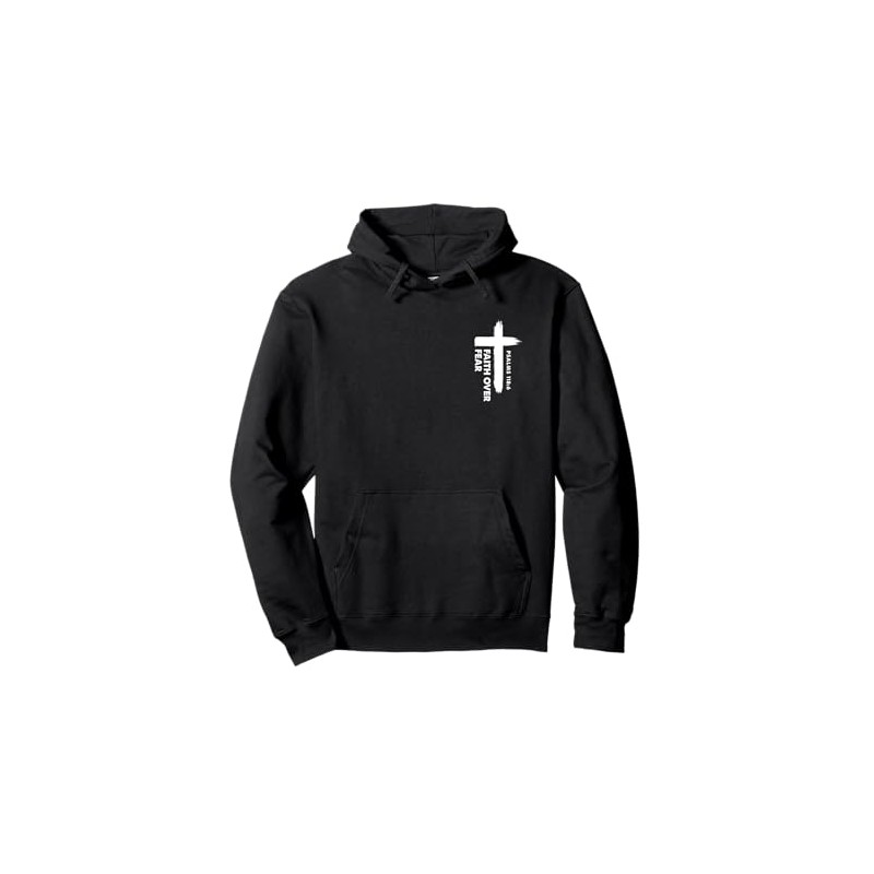 Faith Over Fear Christian Faith Cross Front and Back Print Pullover Hoodie
