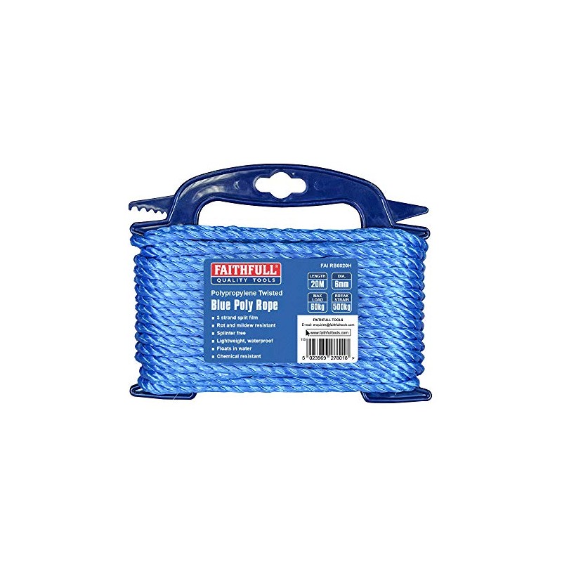 Faithfull FAIRB6020H Blue Twisted Poly Rope Hasp 6mm Dia x 20M Max Load: 60kg, Breaking Strain 500kg