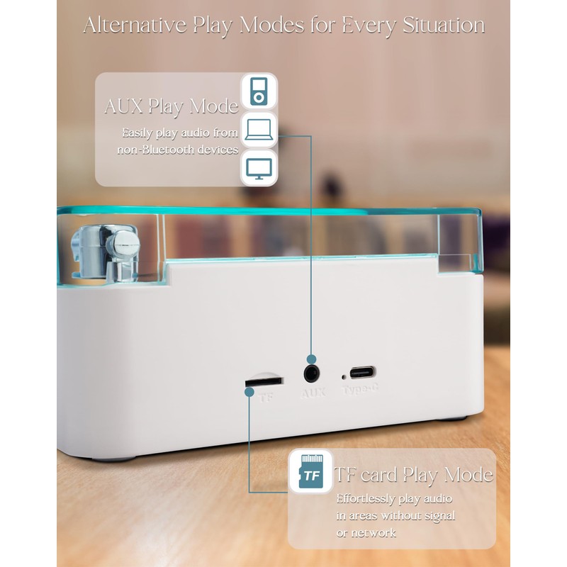 - Immerse in Relaxing Ocean Sounds: Drift off to sleep with soothing nature sounds. Our Bluetooth speaker’s white noise function drowns out distractions, creating a peaceful sanctuary with calming calming ocean waves, babbling brooks, crackling fire, and birds singing