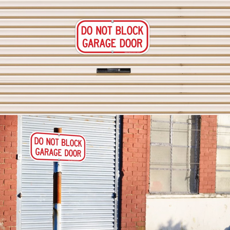 - This sign is designed with high-res red and white color. It is easy to read and hard to ignore. It sends a clear message that “Do Not Block Garage”.
