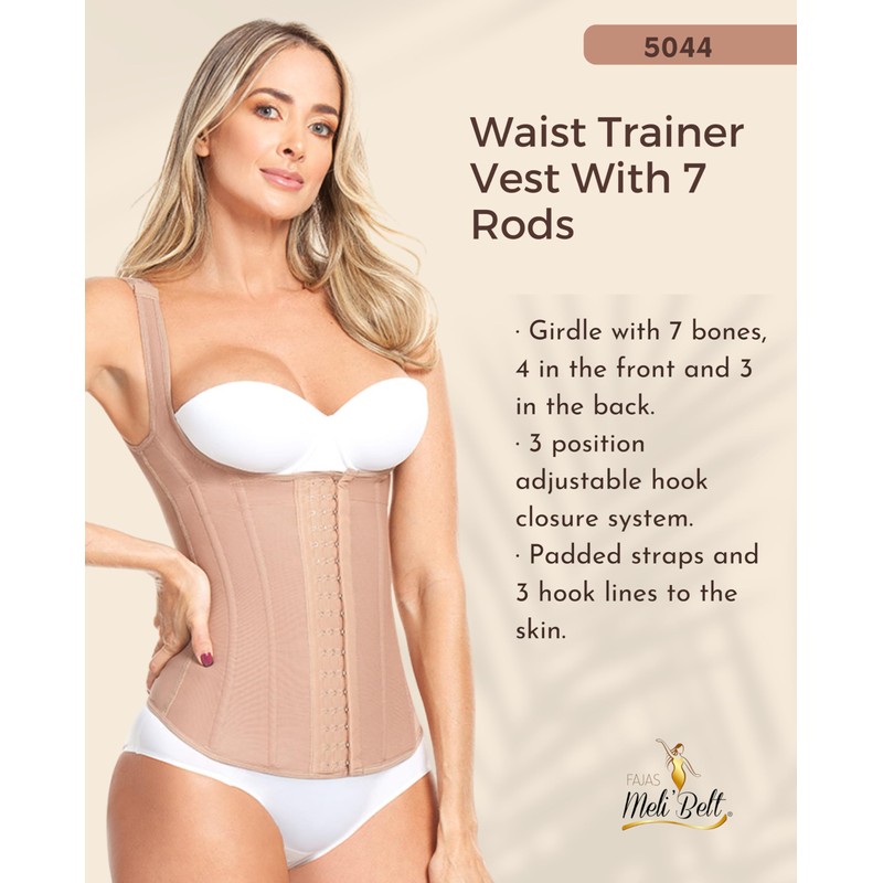 - Vest with 7 bones, 4 in the front and 3 in the back, Wide padded shoulder strap with 3 adjustable level, Zipper with Internal hook closure Double abdominal reinforcement, Stylizes the waist and abdomen, Flat seams that are not noticeable on clothing.