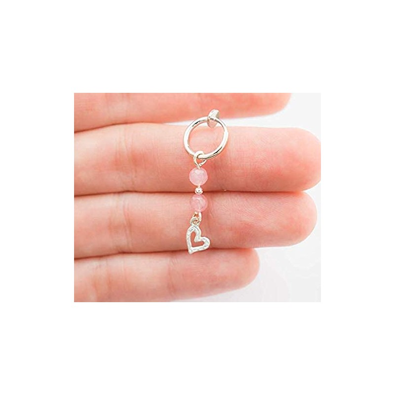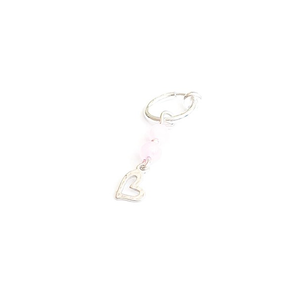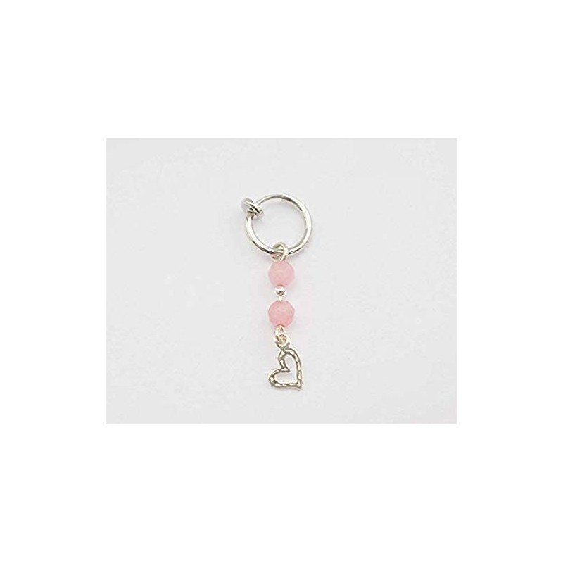 • Handmade Fake Belly Button Ring with Rose Quartz and Heart Charm
