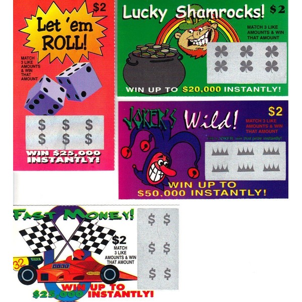 • Listing is for a set of 4 TOTAL assorted fake lottery tickets (1 of each kind)