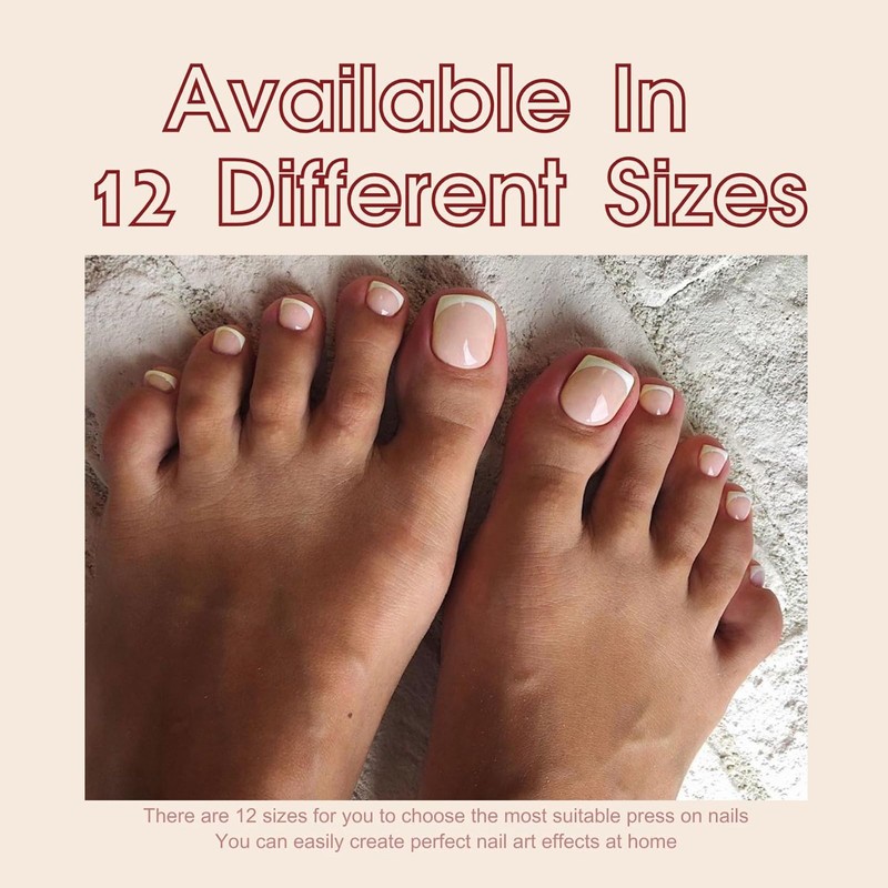 ✔12 sizes of french tip nails can fit your different toenails, 120pcs in total.