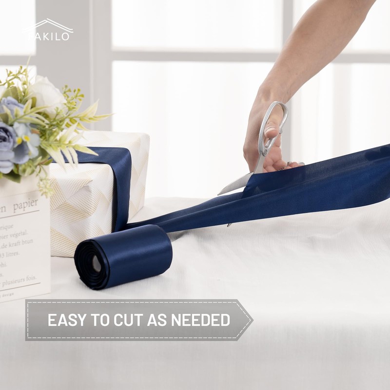 - FAKILO Dark Blue Satin Ribbon 10cm x 20 Yards Wide Ribbon for a Large Business Opening Ribbon Cutting Ceremony Bow Wedding