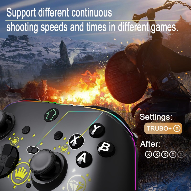 • 【TURBO Function】Turbo switch controller supports auto TURBO and manual TURBO mode, which makes you to win shooting and action games more easily. You can adjust the speed to: 8 shoots/s, 15 shoots/s or 25 shoots/s according you need.