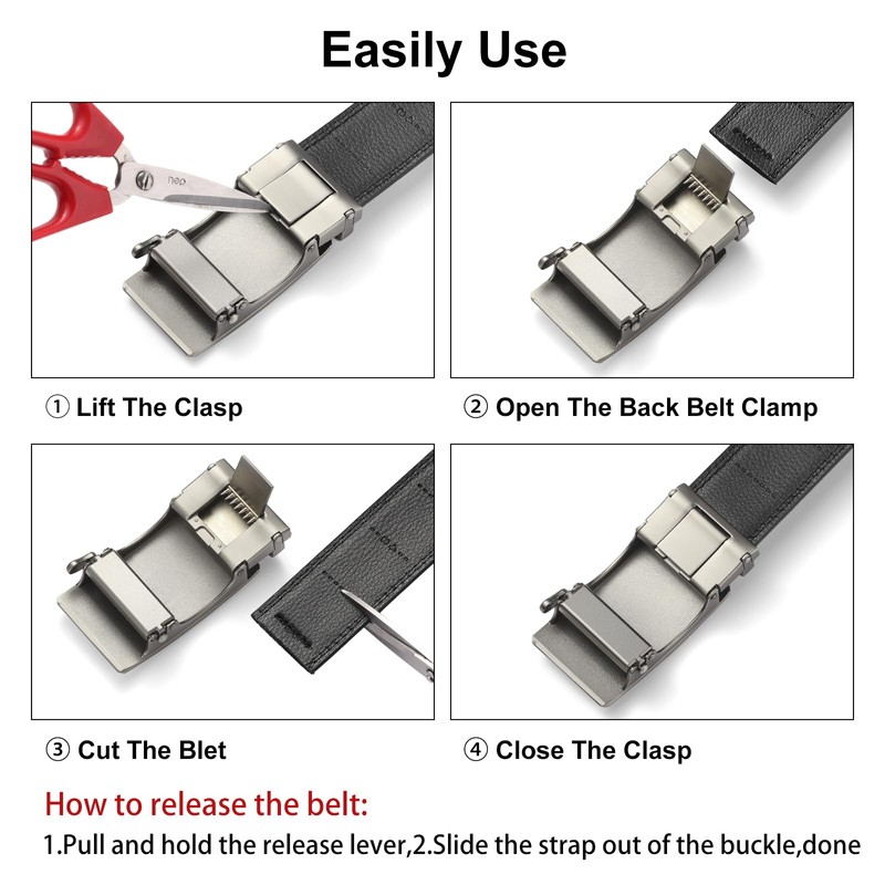- Trim to Exact Fit - The buckle is a removable design, this mens belt can be easily customized waist size, simply remove the buckle, the belt can be cut to your ideal size, adjustable belt design, complete your look with our comfortable fit men's belts