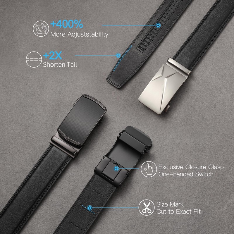 - Precise Fit - This ratchet belt offers 38 unique ratchet notches and enjoys micro-adjustments of up to 1/4" to perfectly fit your waist size