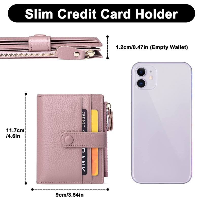 • 【SLIM SIZE & MINIMALIST STYLE】This small bifold wallet size is 4.65"L x 3.54"W x0.79"H, weight 0.18lb, minimalist design,small and delicate, it's easy to carry whether hold it on hand or put it in your bag,light-weight and slim women wallet great fits in your handbag, backpack, crossbody, jeans front or back pocket, etc