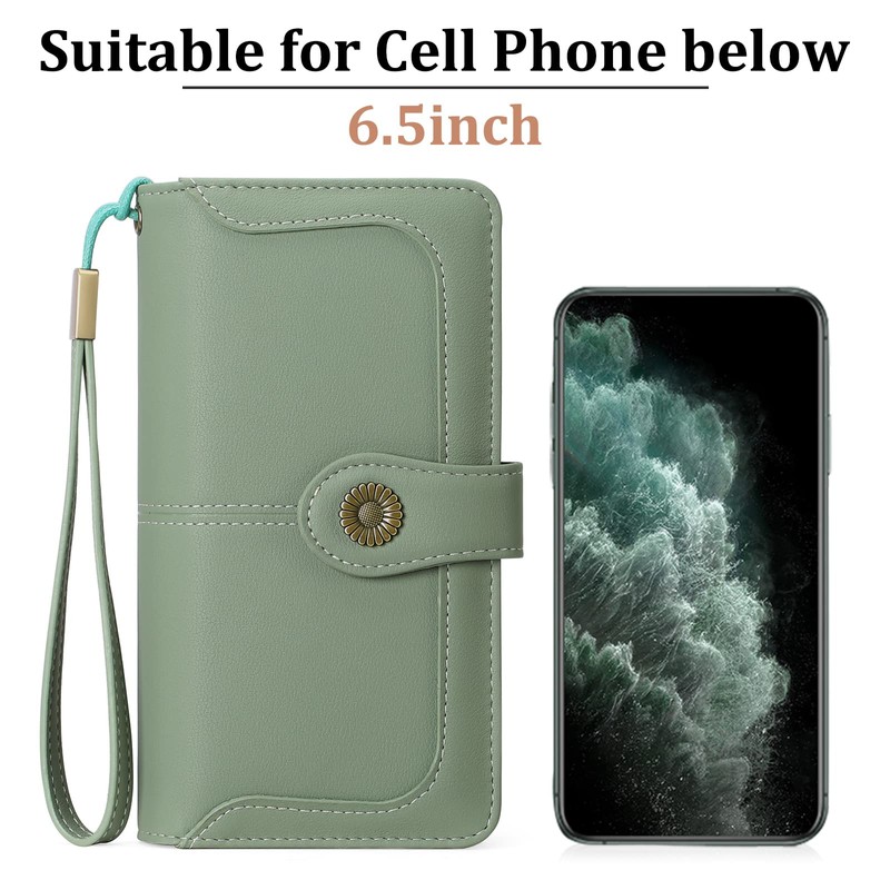 - Leather Wallet for Women: The womens wallet has 24 credit card slots; 2 photo Windows; 4 full-length receipt slots; 1 large zipper pocket (3 Spaces: 1 for smartphones under 6.5 inches - we recommend removing the case to save space; 1 Inner zipper space, coins, keys, rings, necklaces, etc. 1 cash); 1 bracelet.
