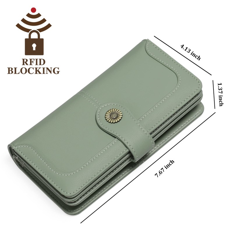 - Perfect Size: Wallets for women dimensions (L * W * H) : 7.67 inches x 4.13 inches x 1.38 inches, weight: 0.77 pounds. The user-friendly design of two buttons avoids being unable to click when you need to put more things in your wallet.