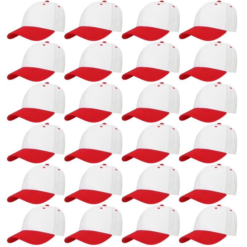 Falari 24 Pack Unisex Baseball Cap Bulk Wholesale Plain Blank Hat Adjustable Size White/Red