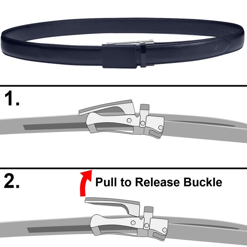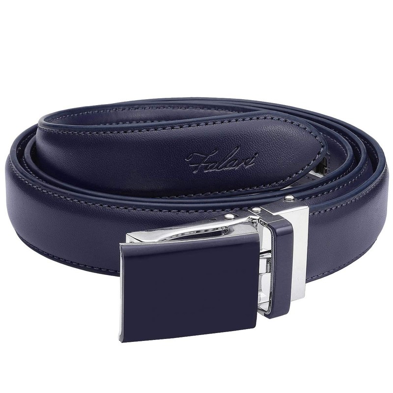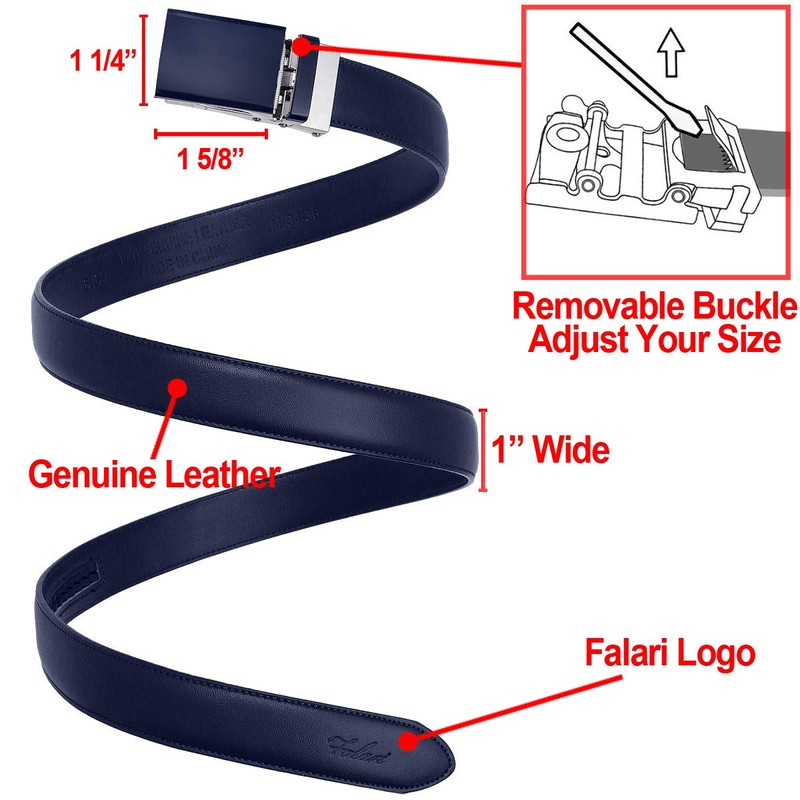 Falari Cinturón de piel con hebilla de carraca automática para mujeres, niños y niñas, ribete de 1 pulgada de ancho para adaptarse, Azul Marino, M - fit up to 34"
