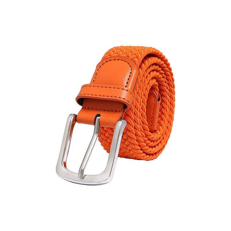 Falari Men Women Multicolored Elastic Stretch Braided Belt Canvas Fabric Woven No Holes Belt (1005 - Orange, Large)
