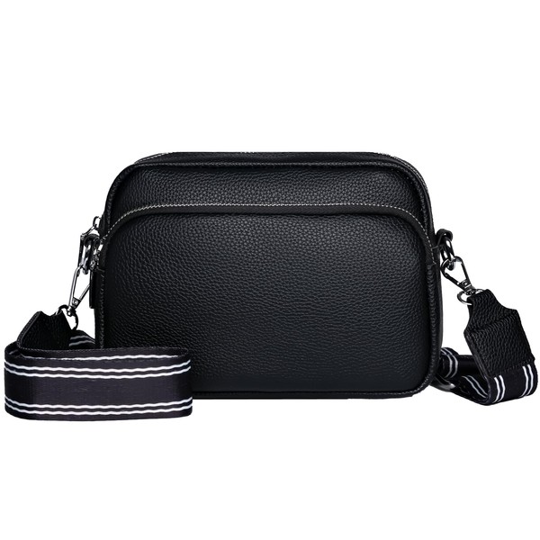 FALAZAR Crossbody Bag for Women, Small PU Shoulder Bags with Adjustable and Removable Wide Strap,Waterproof Ladies Handbag Purses,Black