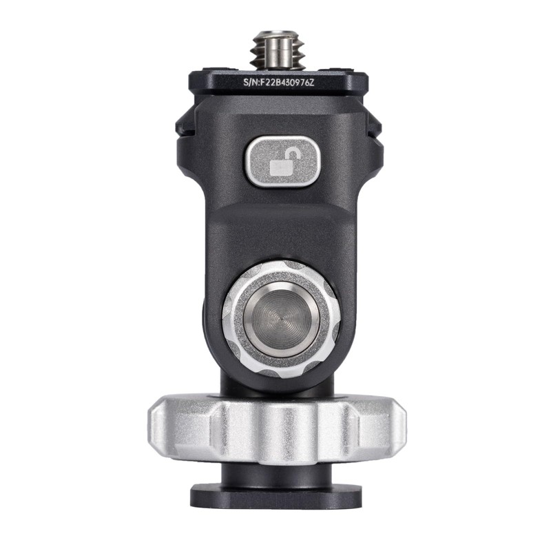The built-in adjustable clamped male cold shoe of F22 Quick Release Pan Head can be locked by rotating the bottom knob to be securely fixed to the cages, handles or other equipment with cold shoe interfaces.Press to unlock, anti-off and secure. Just devote yourself to shooting, worry-free.