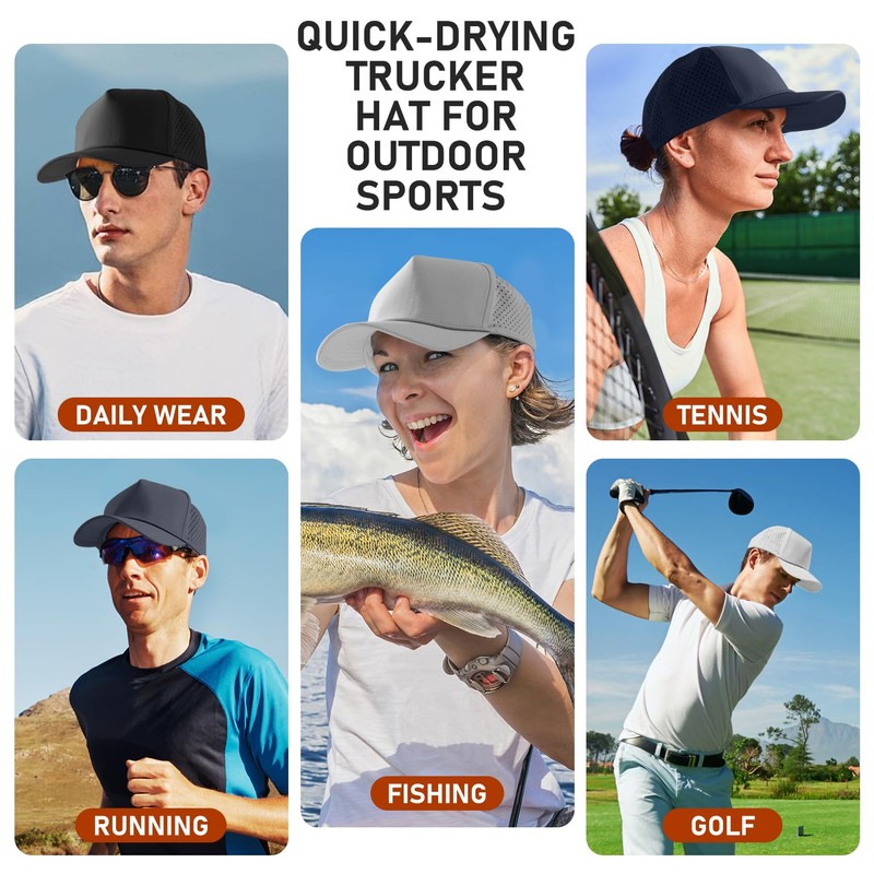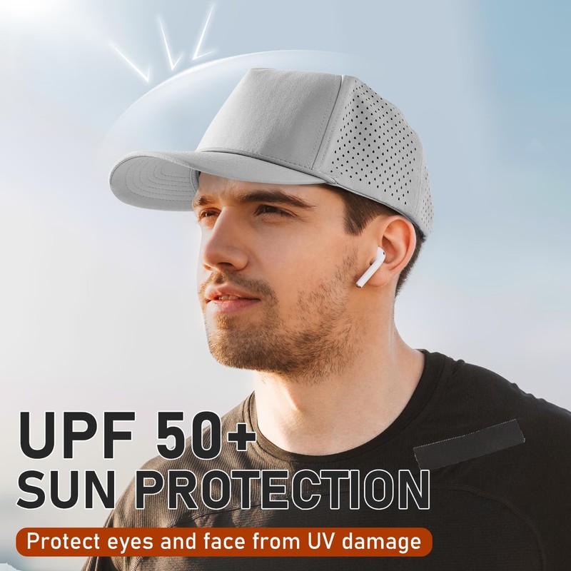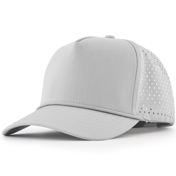 Falidem 5-Panel Quick Dry Trucker Hat, Laser Cut Mesh Snapback Baseball Cap for Men Women Outdoor Sports Light Grey