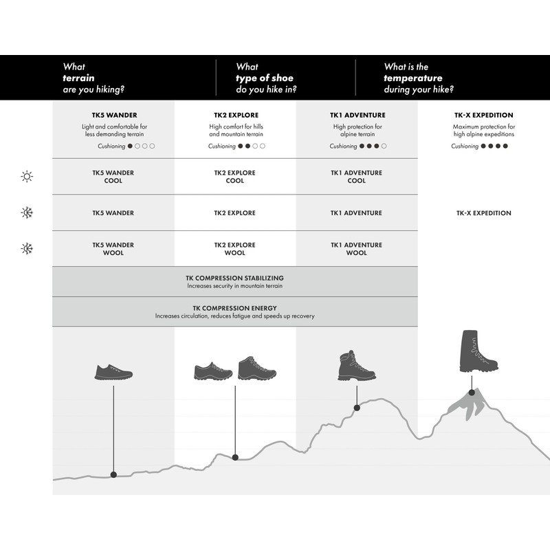 - Model number FALKE men's TK2 Explore Short Cool trekking socks: 16154. Sizes: 39–41, 42–43, 44–45, 46–48; Environmentally friendly and sustainable thanks to Lyocell: The dimensionally stable and friction-resistant material stands for a long service life with high breathability; all components of the high-quality Lyocell are biodegradable and therefore sustainable.