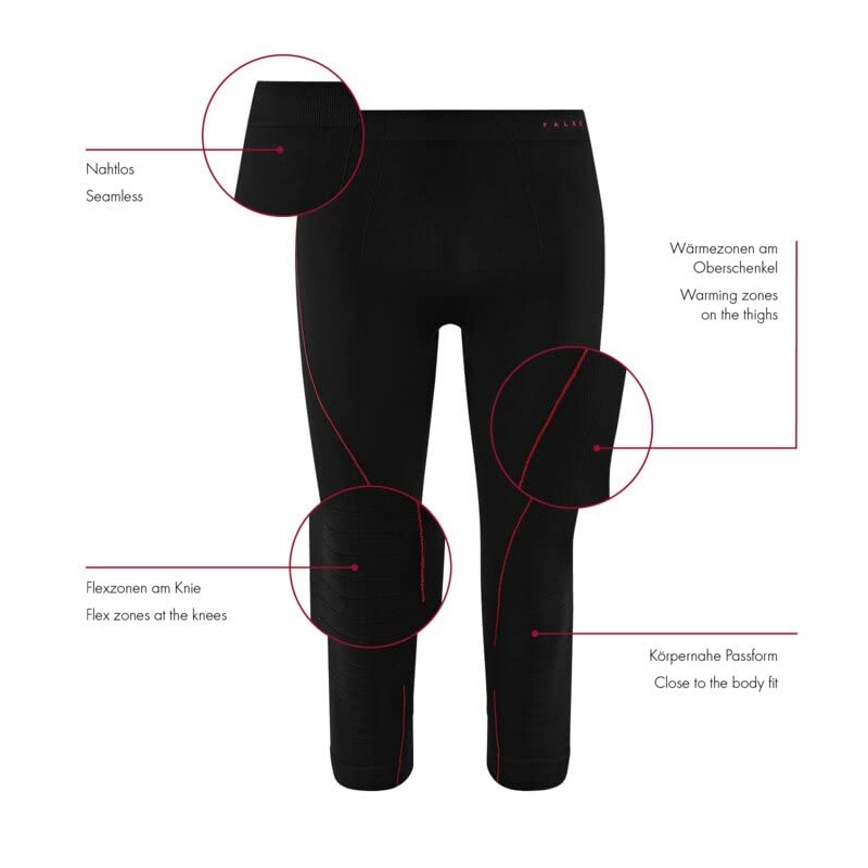 - Breathable and quick dry sport thermals underwear leggings in a short 3/4 length; great combined with FALKE short or long sleeve base layer tops; great shape and colour retention; this underlayer sports legging can be washed at 40°C