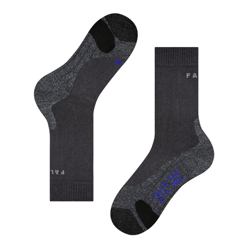 FALKE Mens TK2 Cool Summer Hiking Socks, Moisture Wicking Quick-dry, Thin Lightweight Sock, Grey (Asphalt Melange 3180), US 9-10 (EU 42-43 Ι UK 8-9), 1 Pair