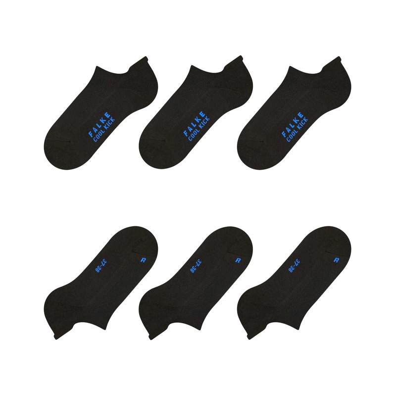 FALKE Unisex Cool Kick Sneaker 3-Pack Trainer Socks Breathable Quick-Drying Sustainable Yarn Ankle Length Light Cushioning Plush Sole Cooling Effect Multipack 3 Pairs, Black 3000., 44-45