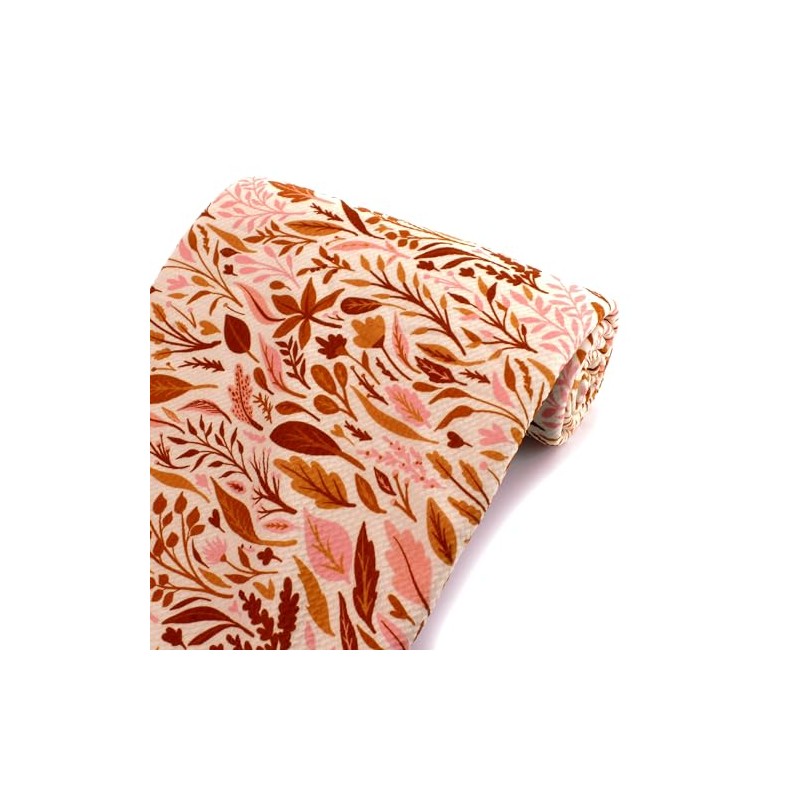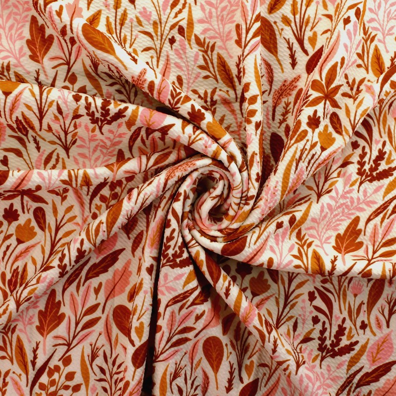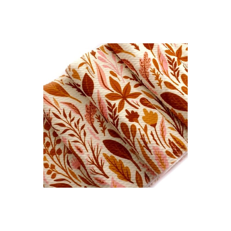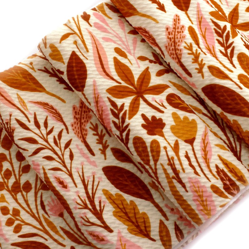 - FEATURES: Blush pink, gold, and sienna orange fall foliage on an ivory background. Mix and match with over 40 beautiful modern boutique solid colors available in a high density weave and spandex for extra stretch